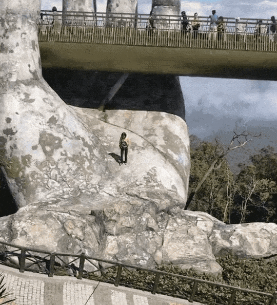 Được nâng đỡ bởi đôi bàn tay khổng lồ, dài 150 m, cao 1.400 m so với mực nước biển, có tầm nhìn ra cảnh quan núi non trùng điệp, cây cầu Vàng có thiết kế độc đáo là điểm du lịch nổi tiếng ở Đà Nẵng, đón tiếp nhiều lượt khách ghé thăm mỗi ngày.