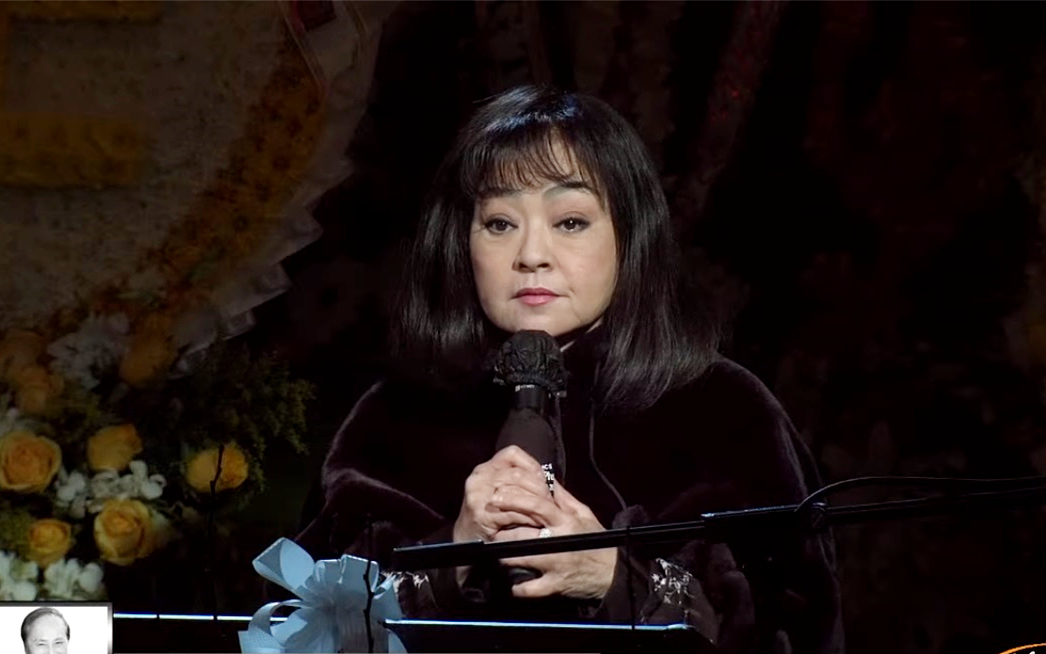 Dựa vào livestream có thể thấy rất đông người hâm mộ đã đến tiễn biệt cố nghệ sĩ. Người thân đã được phát tang và đứng lặng người bên quan tài người quá cố.