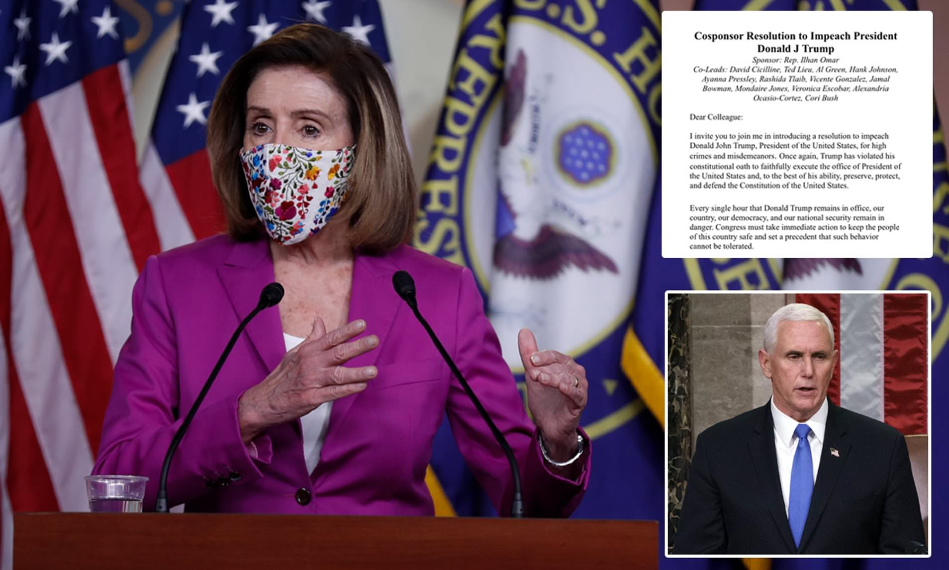 Phe Dân chủ hối thúc Phó Tổng thống Mike Pence phế truất ông Trump.