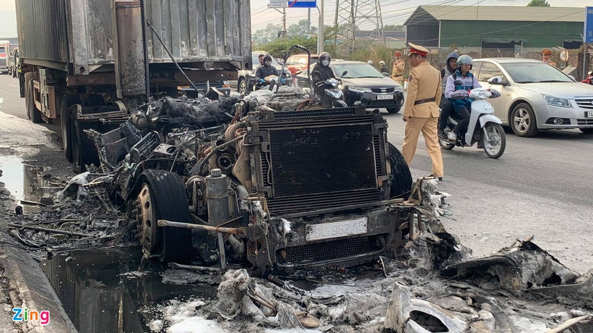 Xe container bị cháy do anh V.V.T. (36 tuổi, người Bắc Giang) điều khiển.