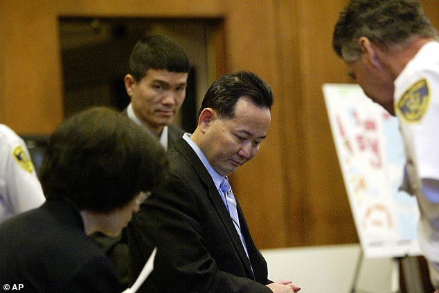 Năm 2005, 2 đồng phạm của Hung là Nam The Tham (giữa ảnh) và Siny Van Tran (đằng sau, bên trái) bị kết tội giết người và lãnh án chung thân. Ảnh: AP