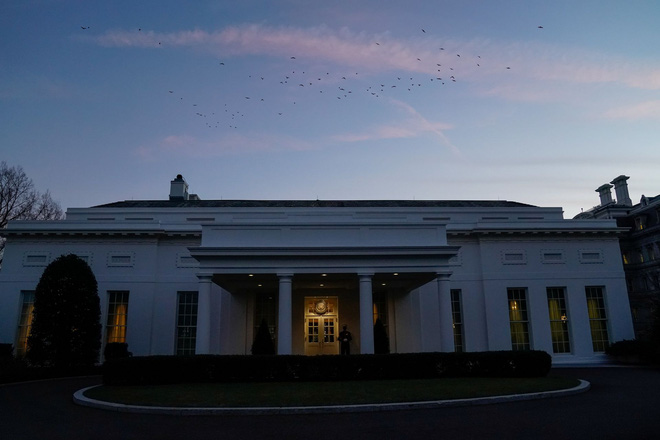 Ngày 20/1, lễ nhậm chức của tân Tổng thống Joe Biden sẽ diễn ra và Tổng thống Donald Trump sẽ rời khỏi Nhà Trắng sau nhiệm kỳ 4 năm. Trong ảnh là văn phòng ở Cánh Tây Nhà Trắng vào lúc hoàng hôn ngày 14/1. Ảnh: Reuters