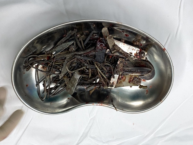 Sau 2 giờ phẫu thuật, các bác sĩ đã lấy ra hết dị vật trong đường tiêu hóa của bệnh nhân và đóng lại ổ bụng. Hiện sức khỏe của người bệnh đã phục hồi tốt, được chuyển về khoa ngoại bụng tiếp tục theo dõi, điều trị. Sau can thiệp, bệnh nhân cần được hỗ trợ tâm lý để tránh nguy cơ có thể tiếp tục ăn kim loại.