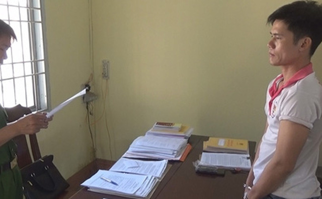 Cán bộ điều tra tống đạt quyết định khởi tố bị can.