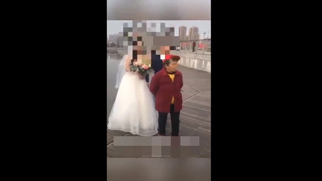 Mới đây, trên mạng xã hội có chia sẻ một đoạn clip ghi lại hình ảnh một cặp đôi đang chụp ảnh cưới. Tuy nhiên, điều khiến ai cũng phải chú ý đó chính là trong khung hình không phải chỉ có đôi uyên ương mà còn xuất hiện từ đâu ra một người phụ nữ lớn tuổi cứ thế đứng chắn ở ngay vị trí trung tâm nhất.