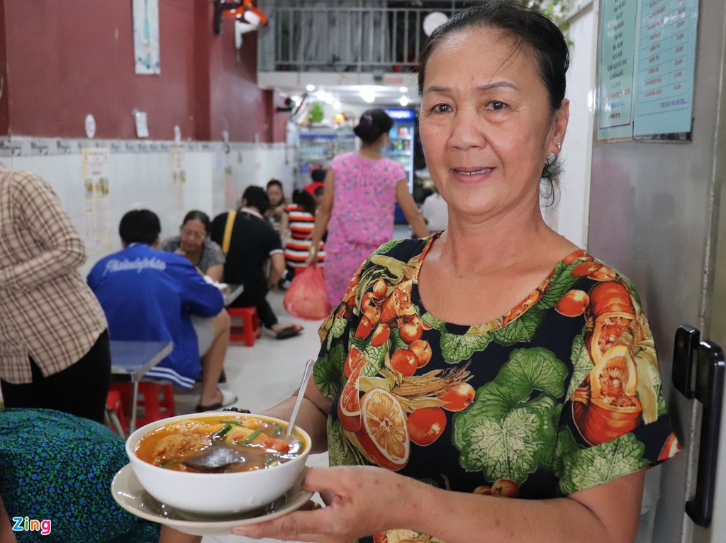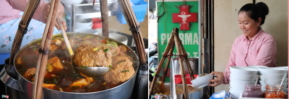 Có mặt ở chợ Bến Thành hơn 40 năm, quán bún riêu Gánh c̣n có biệt danh là bún riêu “sang chảnh” v́ đặc biệt hút khách nước ngoài, Việt kiều.