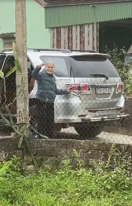 Trong giây phút chào tạm biệt, cụ bà mon men từng bước để tiễn con gái ra xe. Cô con gái ngoái lại, nở một nụ cười và vẫy tay chào tạm biệt mẹ.