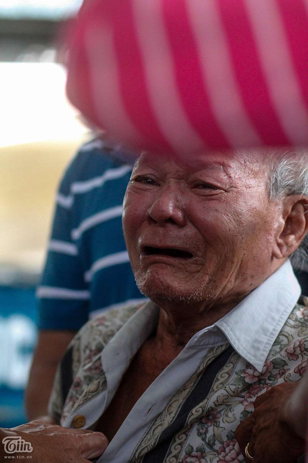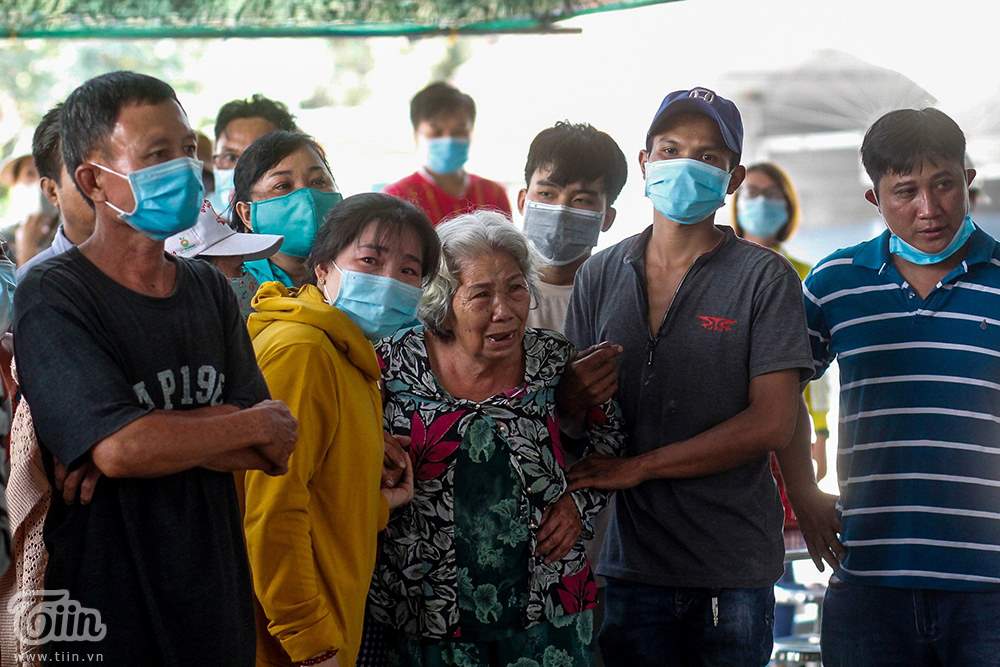 Trong ảnh là bà Võ Thị Biết (mẹ vợ ông Tâm) khóc ngất vì sự mất mát quá lớn. Chỉ trong một đêm mà con gái và cháu của bà đã không còn nữa…
