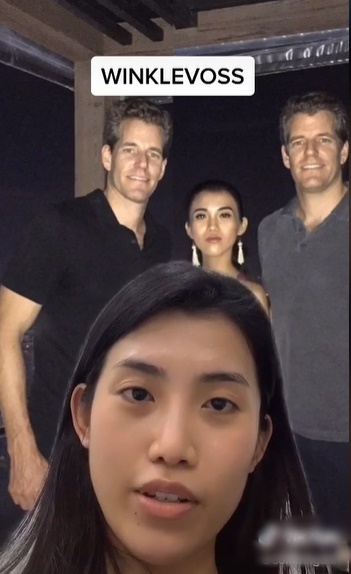 Cô gái trẻ khoe hình chụp với anh em nhà Winklevoss. (Ảnh cắt từ video)