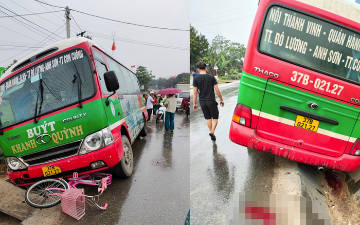 Theo thông tin ban đầu, vào khoảng 14h ngày 5/4, chiếc xe buýt của nhà xe Khanh Quỳnh (chạy tuyến TP Vinh - thị trấn Con Cuông, tỉnh Nghệ An) đang chạy trên Quốc lộ 7. Đến khu vực xã Đỉnh Sơn (huyện Anh Sơn), xe buýt tông trúng xe máy do chị N.T.B. (24 tuổi) chạy cùng chiều phía trước.