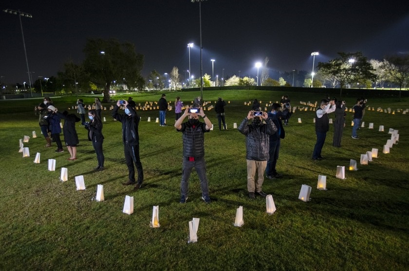 Người gốc Việt ở Mỹ thắp nến truyền đi thông điệp phản đối thù ghét và phân biệt chủng tộc. Ảnh: LA Times.