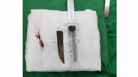 Sau 90 phút phẫu thuật, ê-kíp phẫu thuật gồm: Bs.CK2 Trần Văn Minh – Phó Trưởng, khoa Ngoại Thần kinh, Bs. Nguyễn Châu Thanh, Bs.CK1 Nguyễn Văn Vĩnh – Khoa Phẫu thuật – Gây mê hồi sức đã lấy thành công mũi dao dài 5x2cm ra ngoài.