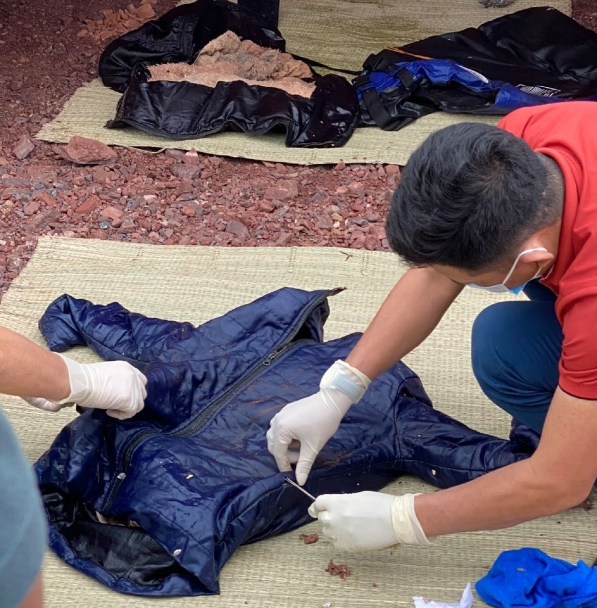 Thông tin trên báo Nghệ An, tại hiện trường ghi nhận một số đồ vật có đặc điểm nhận dạng gồm: 1 chiếc áo phao bên ngoài màu xanh, bên trong màu đen, có các dây thắt an toàn màu đen. Trên áo phao có dòng chữ “JAOMEL * FINEAY”. Bên trái phía trước áo phao có gắn một chiếc còi hiệu màu cam. Bên trong áo phao là một chiếc áo khoác màu tím than, phía trong áo khoác có lông vũ màu nâu. Mở áo khoác màu tím than thấy bên trong là một áo khoác màu xanh da trời.