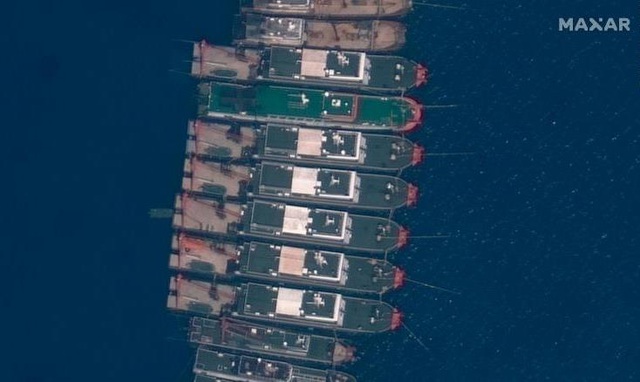 Ảnh vệ tinh cho thấy tàu Trung Quốc neo gần Đá Ba Đầu ở quần đảo Trường Sa thuộc chủ quyền của Việt Nam hôm 23/3 (Ảnh: Maxar).