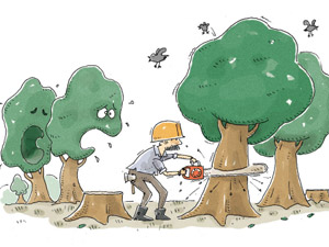 Phấn khởi hơn nữa là giới tiểu thương kinh doanh ở mặt phố. Với họ, mặt tiền là bộ mặt, là nồi cháo gà, là tiền, là vàng ròng... ấy vậy mà có cái cây to lù lù trước mặt thì còn làm ăn buôn bán kiếm tiền gì nữa? Cho nên, việc triệt hạ cây xanh trước mặt tiền là một nỗi khát khao cháy bỏng, có người bị mất ngủ kinh niên chỉ vì ngày đêm nghĩ cách giết cây. Người thì dội nước sôi vào gốc, kẻ thì đổ a xít, đứa thì vãi muối... tuy hiệu quả mạnh yếu khác nhau, nhưng chung quy lại, ai cũng muốn cây trước nhà chết càng nhanh càng tốt để... kiếm ăn. Nay được chặt cây, khác nào lộc trên trời rơi xuống?!