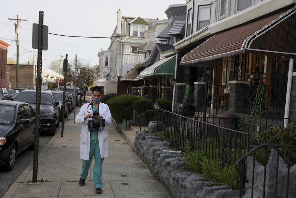 Sau khi đảm bảo bệnh nhân tiêm vaccine không có triệu chứng gì bất thường, Khan chuẩn bị tới nhà tiếp theo. Ảnh: AP