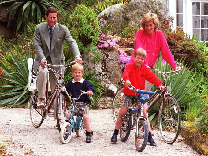 Trong quá khứ, từng có rất nhiều bức ảnh Harry đạp xe cùng gia đình hồi nhỏ được ghi lại. Một lần, vào năm 1988 khi Harry 4 tuổi, anh đã ngồi sau xe đạp của Thái tử Charles đi quanh khu đất Balmora. Một năm sau, Charles, Diana, William và Harry cùng đạp xe đi dạo ở Tresco trên đảo Scilly, Italy.