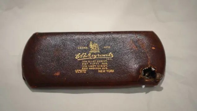 Hộp đựng kính có vết đạn ở bên dưới góc phải. Ảnh: History