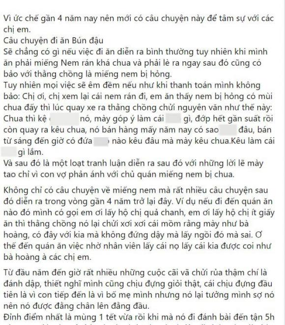Do đã chịu đựng gần 4 năm trời vì chồng vũ phu. Người vợ lên mạng than thở. Tuy nhiên lại bị cư dân mạng trách.