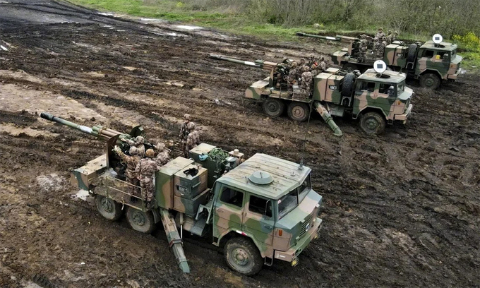 Binh sĩ Trung Quốc diễn tập bắn đạn thật với pháo tự hành PLC-09. Ảnh: PLA.