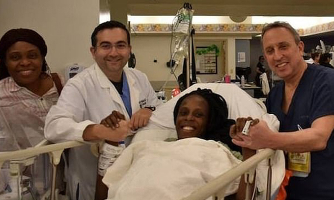 Halima Cisse (giữa) và các bác sĩ hỗ trợ cô sinh con tại một bệnh viện ở Morocco tuần này. Ảnh: Facebook/Buzz2Stars.