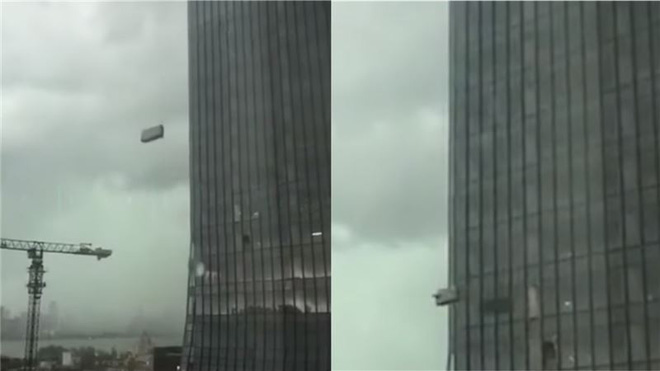 Tuy nhiên, 13h30 ngày hôm đó, hai công nhân vệ sinh được cử đến để lau tường kính bên ngoài của một toà cao ốc. 1 tiếng sau đó, thời tiết thay đổi đột ngột, gió mạnh liên tục quật vào thùng treo của cả hai gây rung lắc, đập mạnh vào tường của toà nhà nhiều lần. Thậm chí, trong đoạn video quay lại, hình ảnh cho thấy rõ khoảnh khắc kính toà nhà bị vỡ và bay ra ngoài.