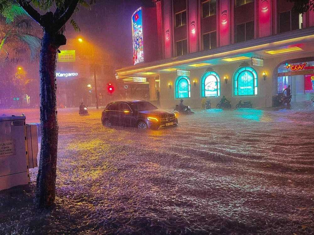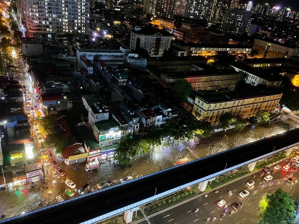 Cụ thể, theo những hình ảnh được chia sẻ từ cộng đồng mạng, có thể kể đến những điểm nóng về ngập lụt như khu vực Tràng Tiền Plaza tại ngã tư Hàng Bài – Hai Bà Trưng. Khu vực này đã nhanh chóng trở thành “hồ nước” khi mức ngập được ghi nhận tại đây có thể lên tới hơn 400 mm.