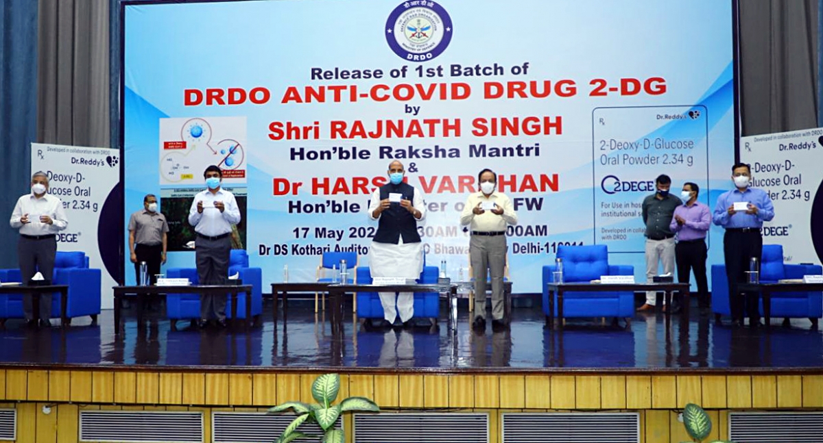 Loại thuốc phục vụ điều trị Covid-19 với tên gọi 2-deoxy-D-glucose (gọi tắt là 2-DG) được giới thiệu ngày 17/5, do Viện Y học Hạt nhân và Khoa học Liên ngành thuộc Tổ chức Phát triển và Nghiên cứu Quốc phòng Ấn Độ (DRDO) cùng công ty dược Dr Reddy’s Laboratories phát triển.