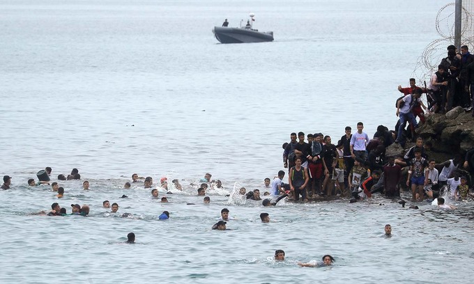 Khoảng 6.000 người di cư vượt biển vào thành phố Ceuta, buộc Tây Ban Nha phải triển khai quân đội tuần tra biên giới và trục xuất quy mô lớn.