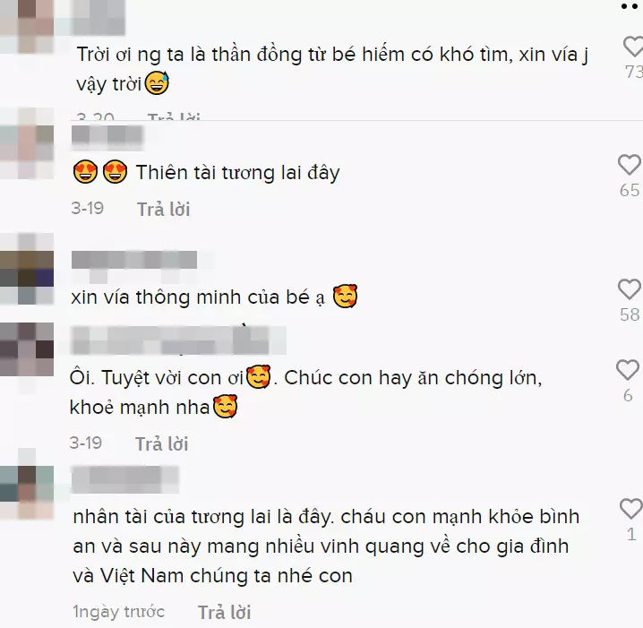 - "Giỏi quá con ơi. Cho em xin chút vía thông minh của bé ạ".