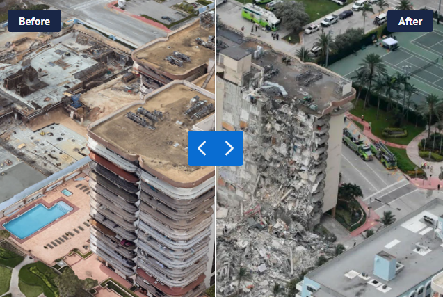 Hình ảnh trước và sau của tòa nhà 12 tầng vừa bị sập ở Miami