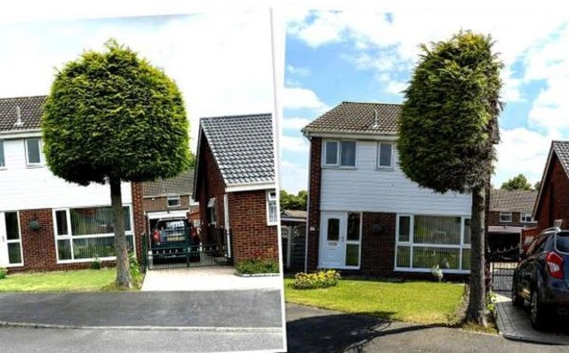 Một cái cây bỗng chốc trở nên nổi tiếng và là “điểm thu hút du khách”, sau khi nó bị phạt nửa theo chiều dọc do tranh cãi giữa hai nhà hàng xóm.