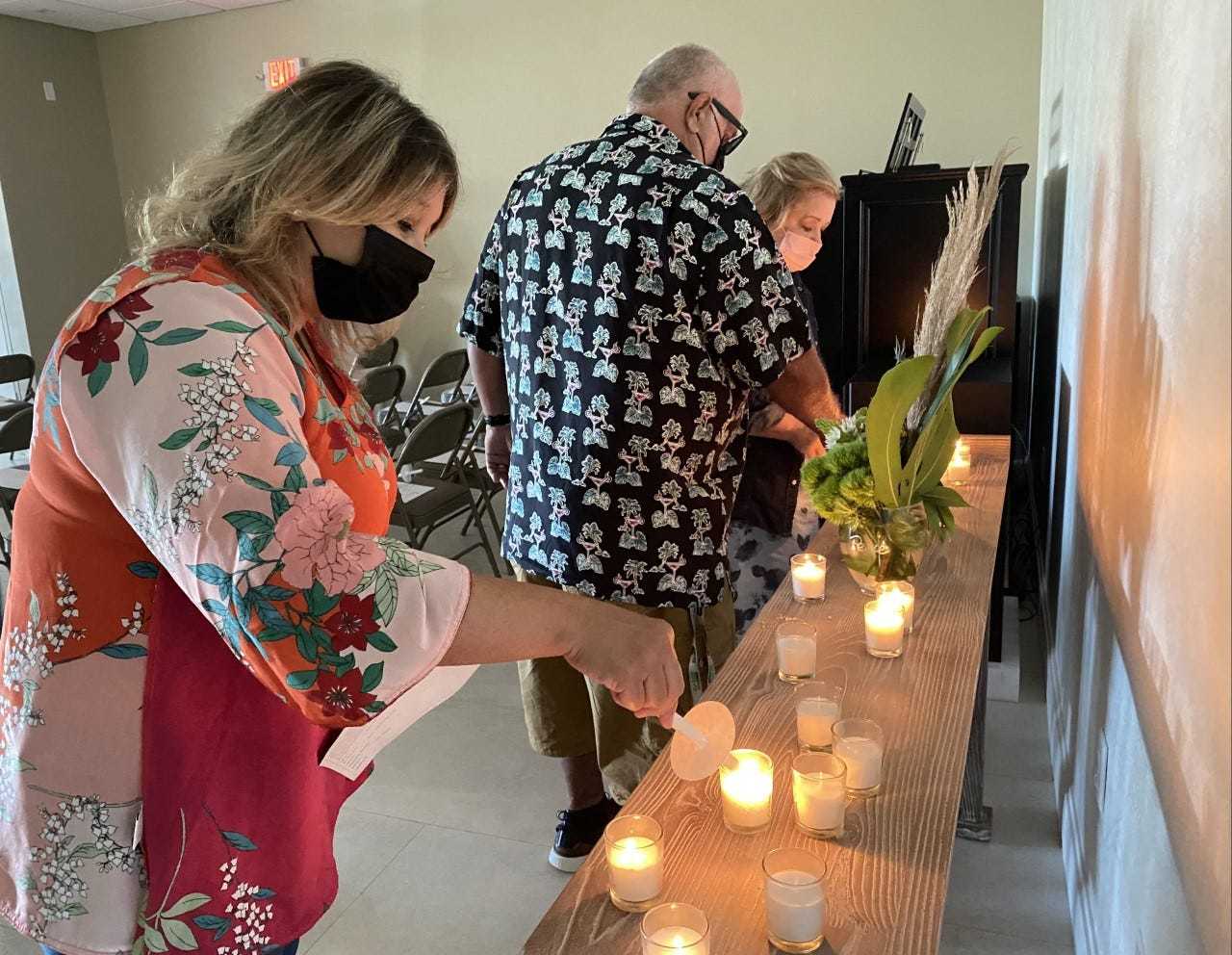 Người dân địa phương thắp nến cầu nguyện cho những người thiệt mạng và mất tích sau vụ sập chung cư Champlain Towers. Ảnh: Palm Beach Post