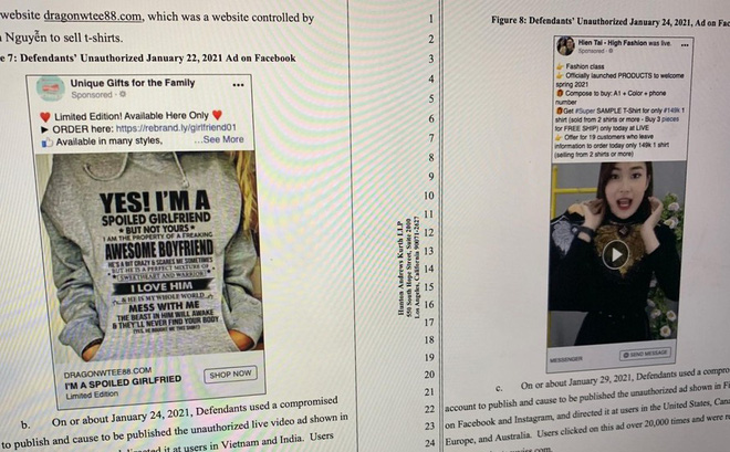 Facebook vừa nộp đơn kiện lên tòa án tại bang California (Mỹ) để chống lại 4 người đang sống tại Việt Nam. Theo đơn kiện, nhóm bị đơn đã dùng thủ đoạn chiếm tài khoản để quảng cáo, livestream bán hàng trái phép…
