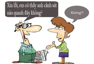 Em làm ơn cho anh hỏi, em có thấy anh cảnh sát nào quanh đây không?