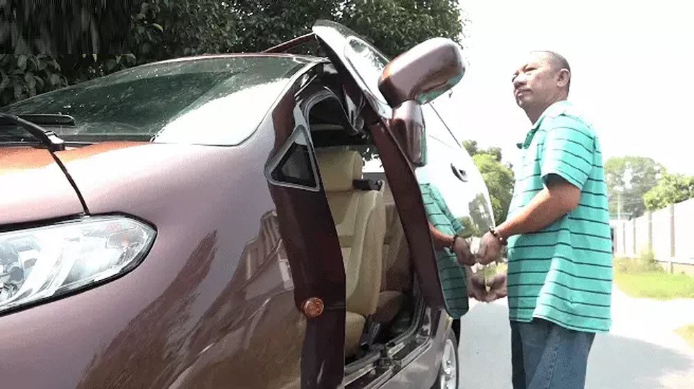 Cửa xe thiết kế dạng cánh gấp khi mở được nâng thẳng lên trên nhờ hệ thống thủy lực.