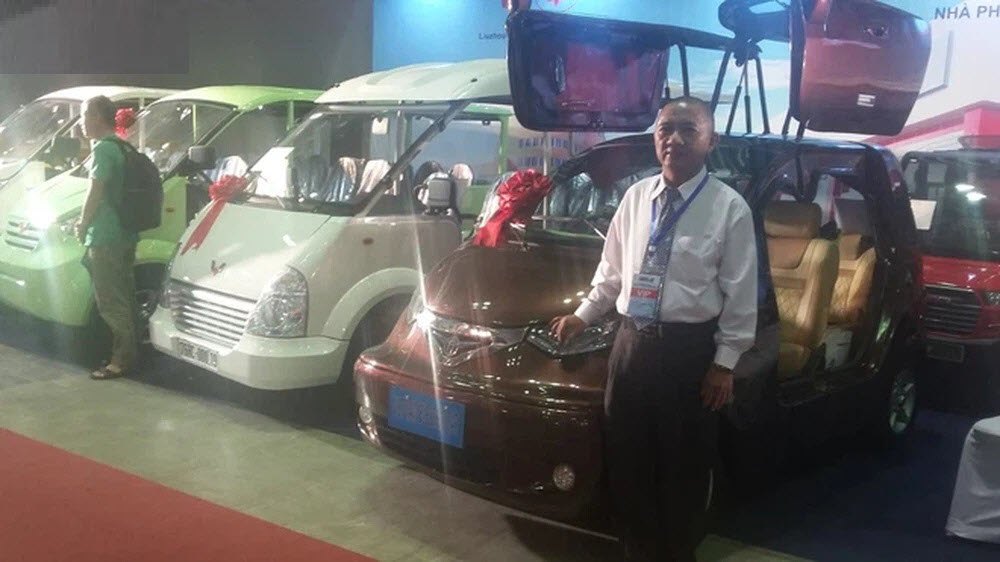 Ông Tâm bên chiếc ô tô điện lên báo nước ngoài.