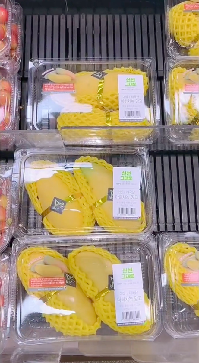 Cuối cùng, loại quả mà anh thấy đắt đỏ nhất chính là xoài. Với giá gần 9000 won (gần 180k), mọi người sẽ mua được đúng… 2 trái xoài ở Hàn.