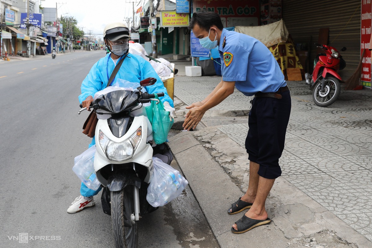 Ông Dũng chạy xe khắp các quận huyện với quãng đường khoảng 60 km, mang những phần ăn đến cho bà con nghèo khó. Trên quốc lộ 50, đoạn qua xã Phong Phú (huyện Bình Chánh), ông được cảnh sát giao thông nhanh chóng cho qua chốt khi biết đang làm tình nguyện.