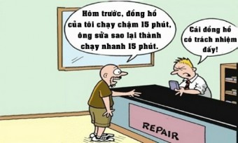 - Lúc trước, chiếc đồng hồ này chạy chậm 15 phút, nhưng sau khi ông sửa thì nó lại chạy nhanh 15 phút. Ông thấy thế nào?