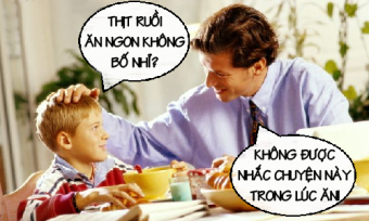 Cậu con trai gật gù. Ăn xong, ông bố nghiêm nghị hỏi: