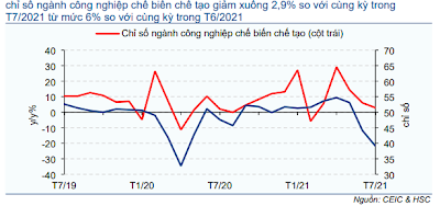 World Bank dẫn số liệu sau đây trong tháng 7, so với cùng kỳ năm trước: tổng mức bán lẻ hàng hóa và dịch vụ giảm 19,8% là mức giảm lớn nhất kể từ tháng 4 năm 2020. Trong khi tăng trưởng ngành công nghiệp giảm từ 4,9% trong tháng 6 xuống còn 2,2% trong tháng 7. Ngoài ra, chỉ số nhà quản trị mua hàng (PMI) trong tháng 8/2021, theo IHS Markit cũng giảm xuống 40,2 mức thấp nhất trong 15 tháng kể từ tháng 5/2020.