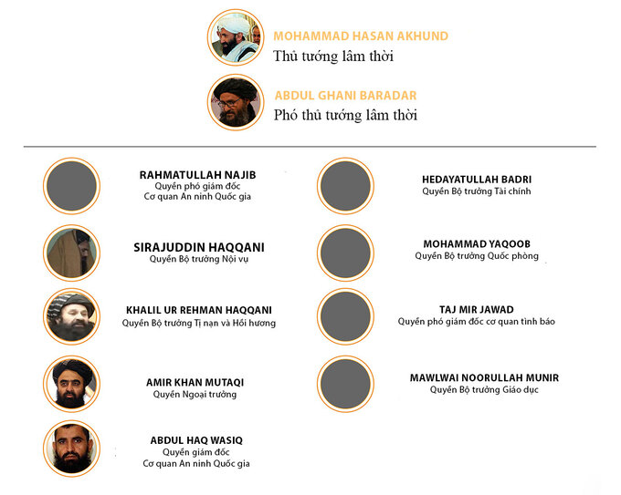 Chính phủ lâm thời nhiều bí ẩn của Taliban. Đồ họa: Aljazeera.