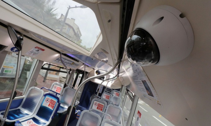 Camera nhận diện khuôn mặt trên xe buýt tại Pháp hồi tháng 4/2020. Ảnh: Reuters