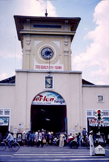 Cửa Nam là cửa chính chợ Bến Thành năm 1965 (lúc ấy mang tên chợ Quách Thị Trang, một học sinh yêu nước ngã xuống trước họng súng của chính quyền Ngô Đình Diệm năm 1963 (Ảnh tư liệu)