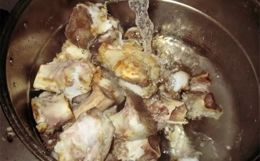 - Ngâm xương trong chậu nước sôi trong 10 – 20 phút rồi xả nước lạnh rửa sạch.