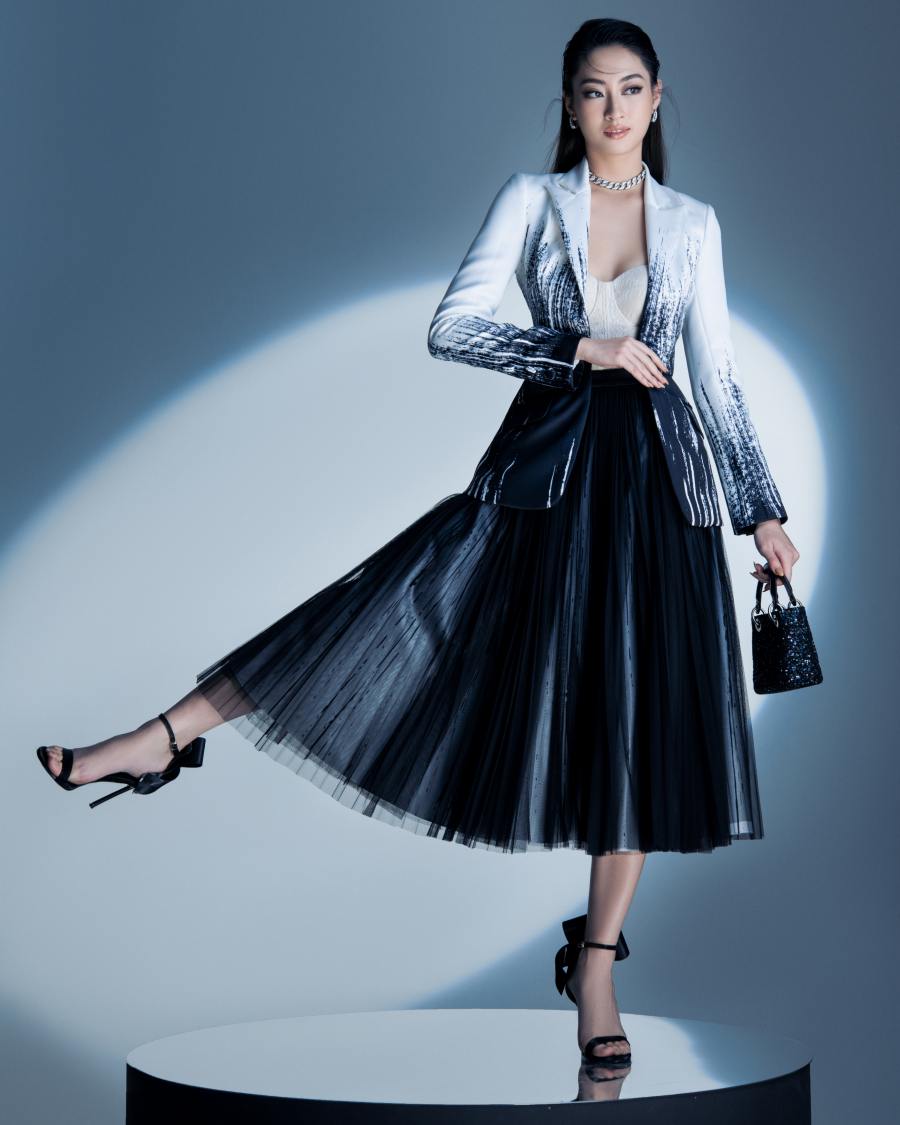 çHoa hậu Lương Thuỳ Linh xuất hiện với hình ảnh quý cô công sở trong những trang phục kết hợp vẻ đẹp hiện đại nhưng vẫn bay bổng và nhẹ nhàng.