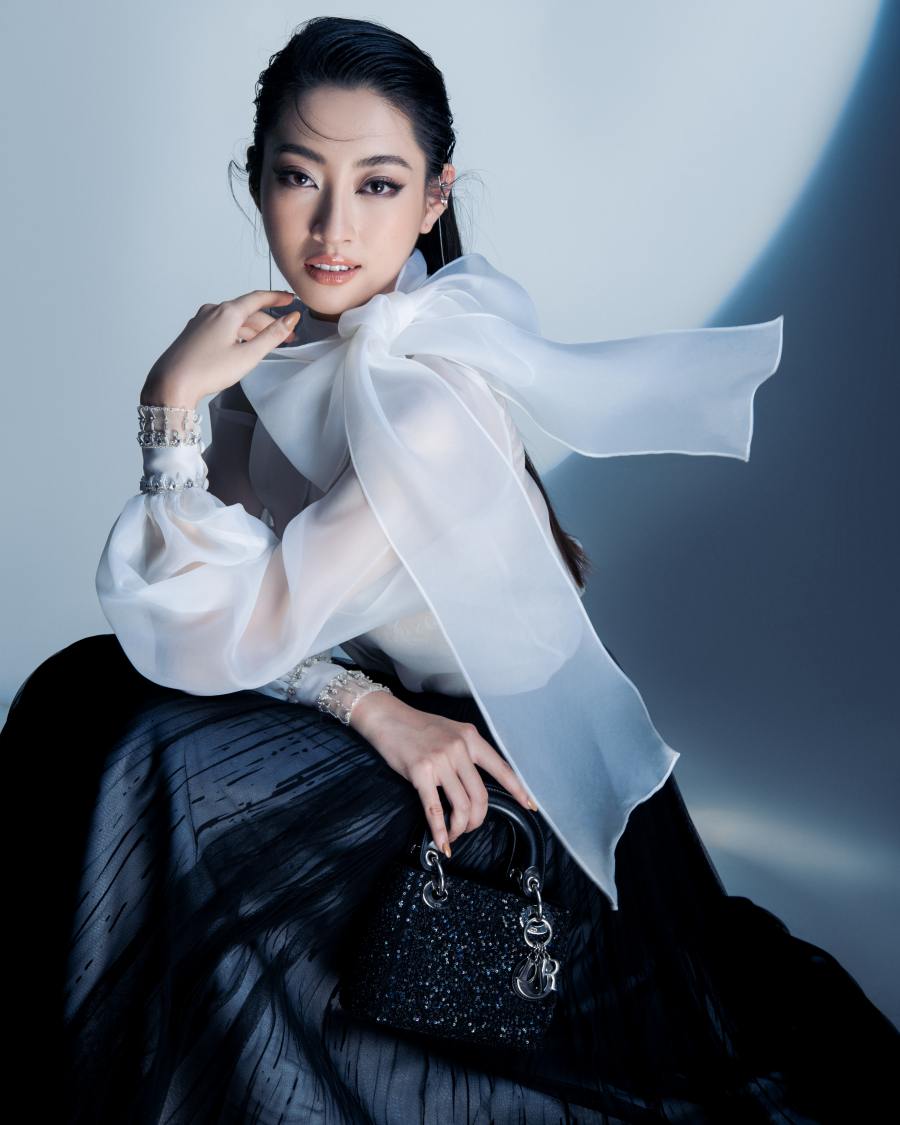 Khác với hình ảnh công chúa thường thấy, Lương Thuỳ Linh xuất hiện với dáng vẻ của một nữ giám đốc thành đạt trong BST mới của NTK Đỗ Long.