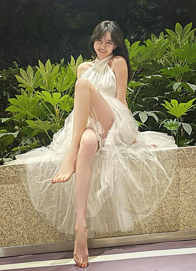 Ban Seo Jin khoe khéo cặp chân dài nuột nà khi diện chiếc váy bồng bềnh.