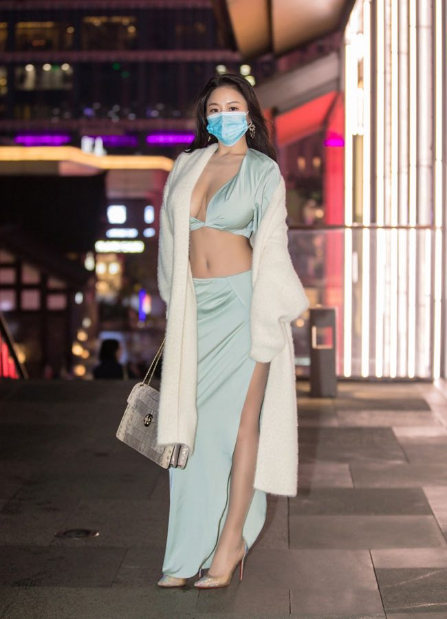 Các chị em châu Á cũng lăng xê triệt để thời trang tôn vòng 1 khi đi chơi phố vào buổi tối.